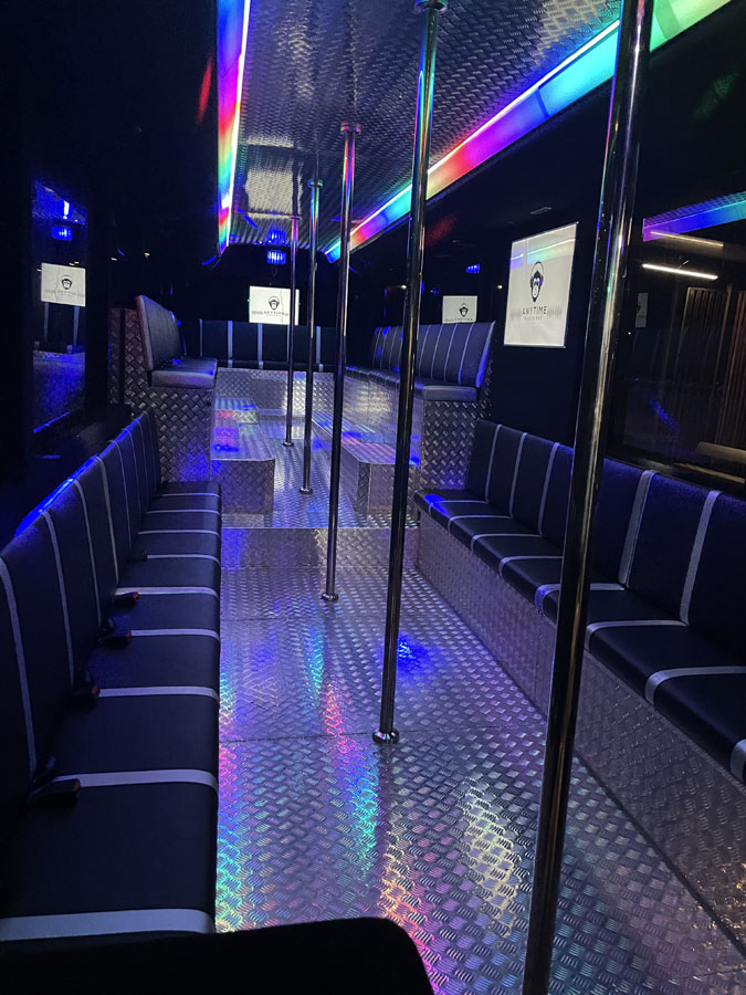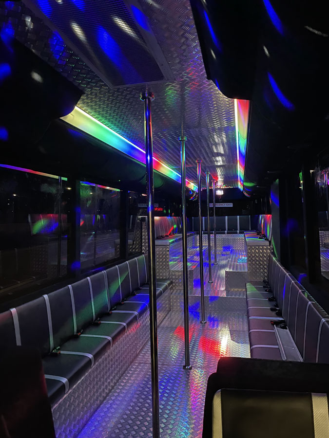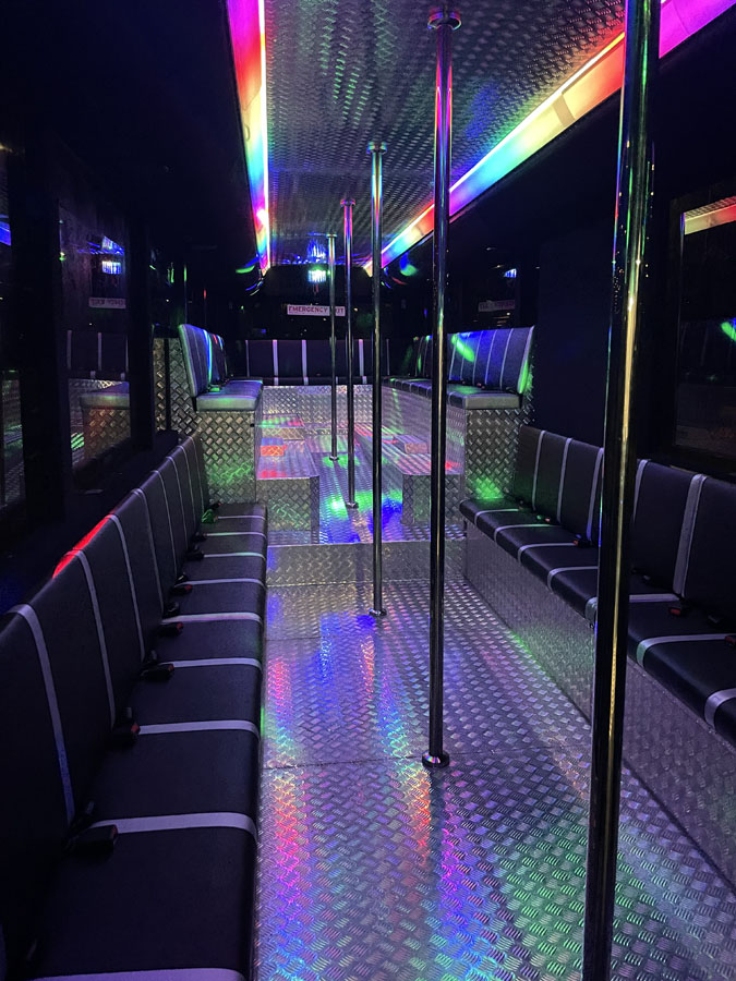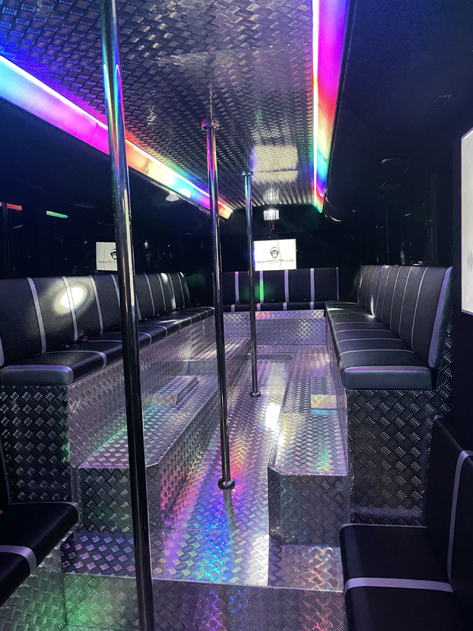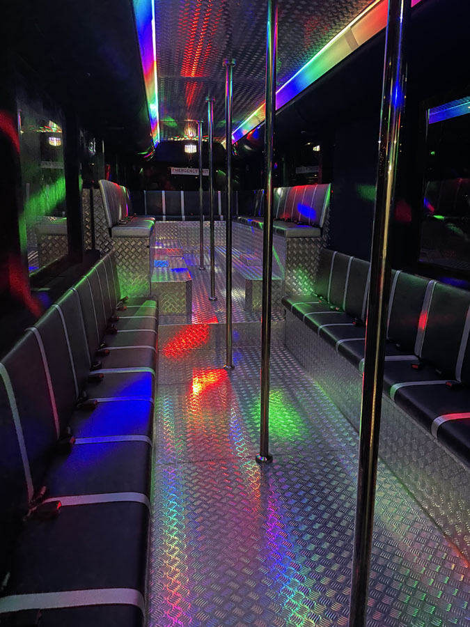 • Big Sound System: Featuring 8 speakers and 2 subwoofers, the party will be pumping throughout the whole bus.